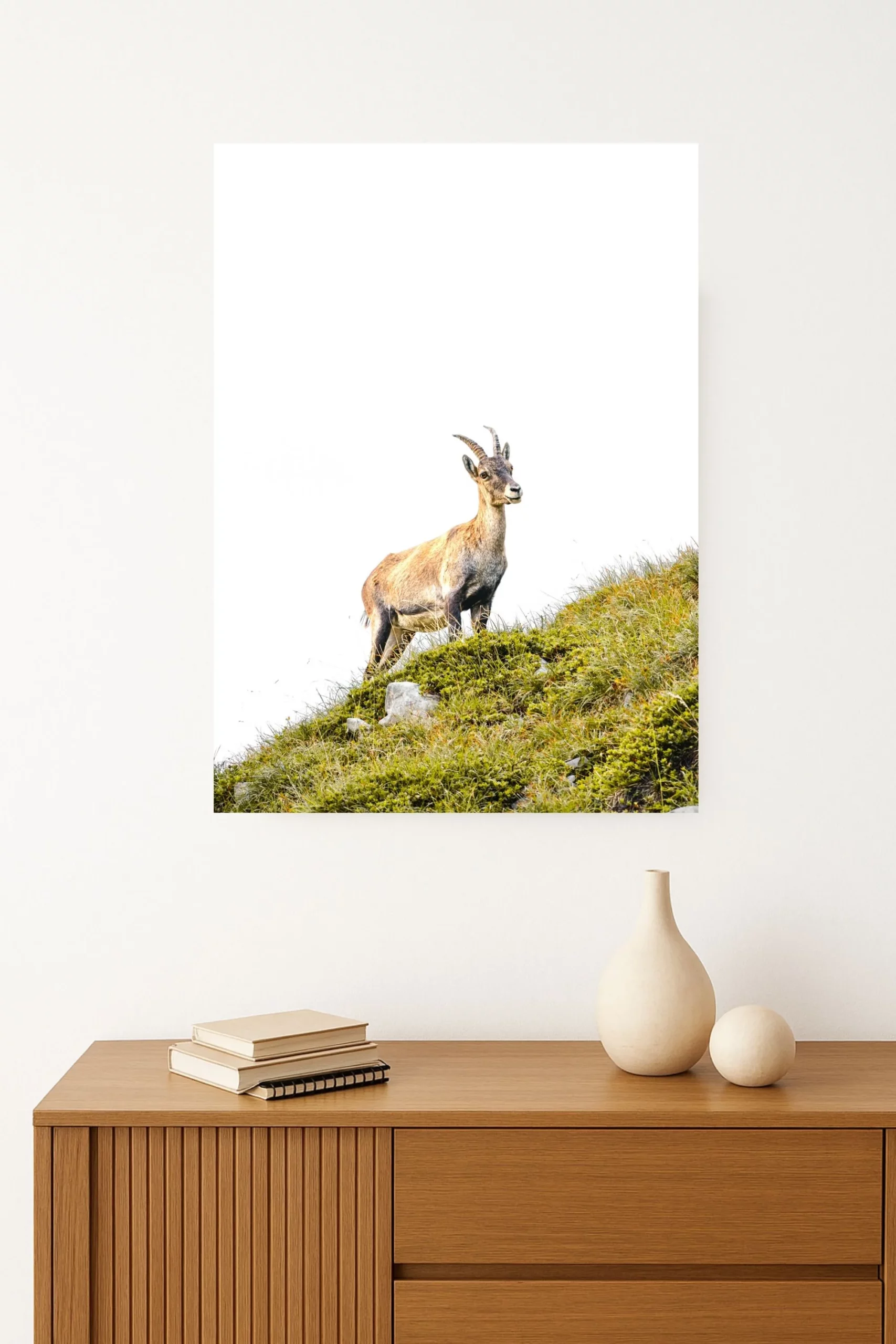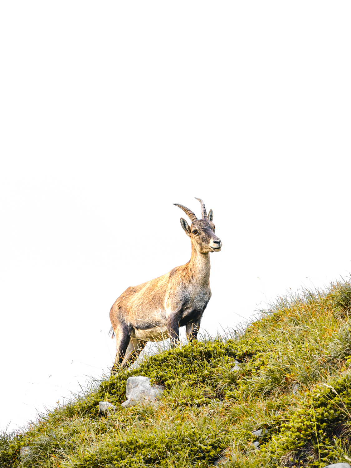 Jeune bouquetin en montagne, dans les pentes du Vercors. Une scène paisible et authentique de la faune alpine.